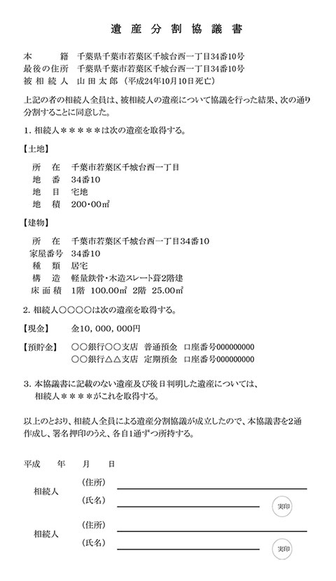 - 遺産分割協議の結果、遺産を相続しない人も署名押印しなければなりません。
